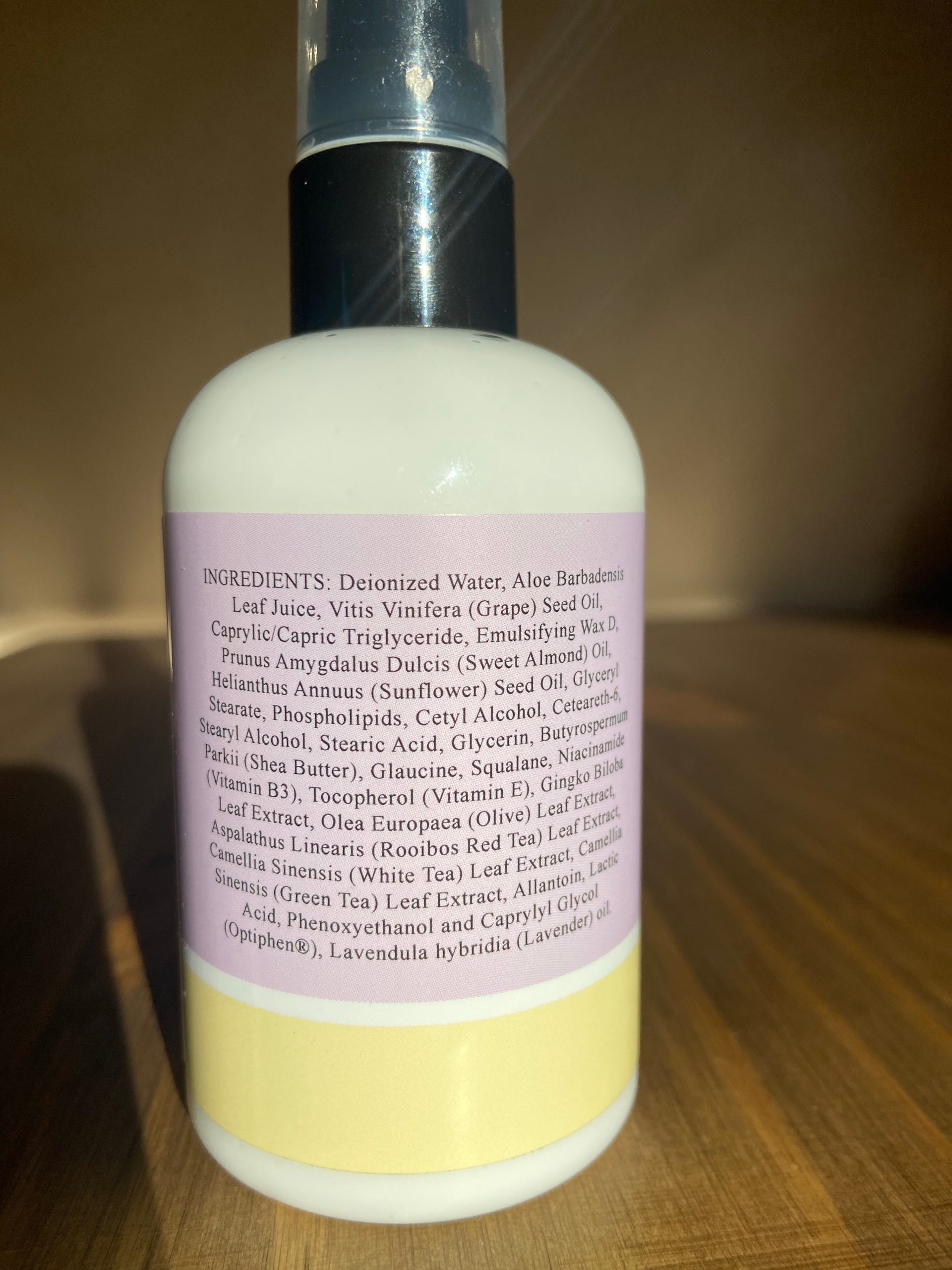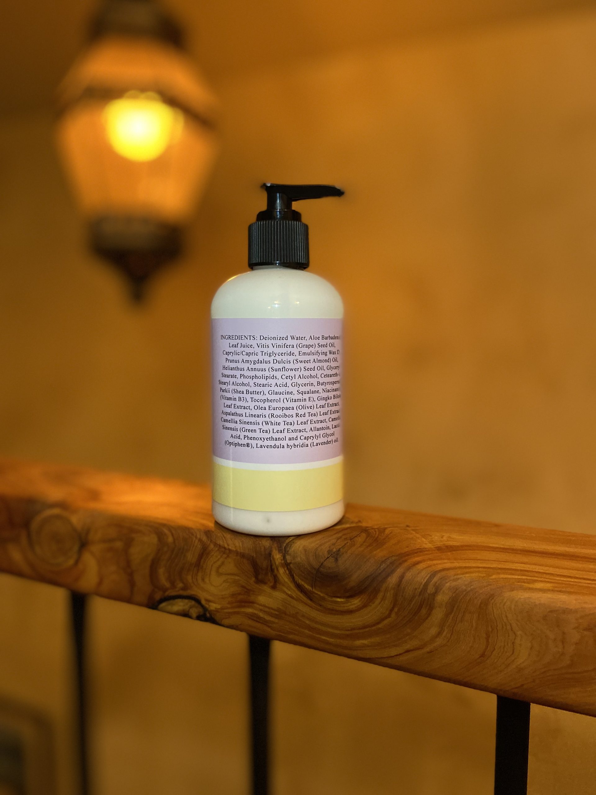 A smooth and healthy facial, hand, and body moisturizing lotion made with a wonderful blend of aloe vera, shea butter, vitamins B3 & E, tea extracts, and oils of grape seed, sweet almond, olive, lavender, sunflower seed. Great for nourishing and hydrating dry and sensitive skin, and with its quick absorbing nature works well under makeup foundations.